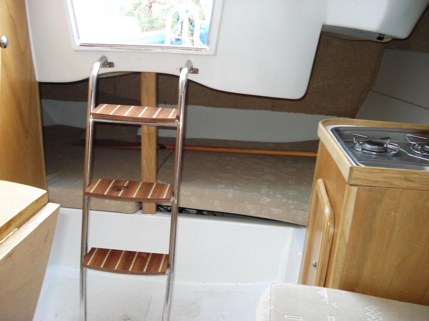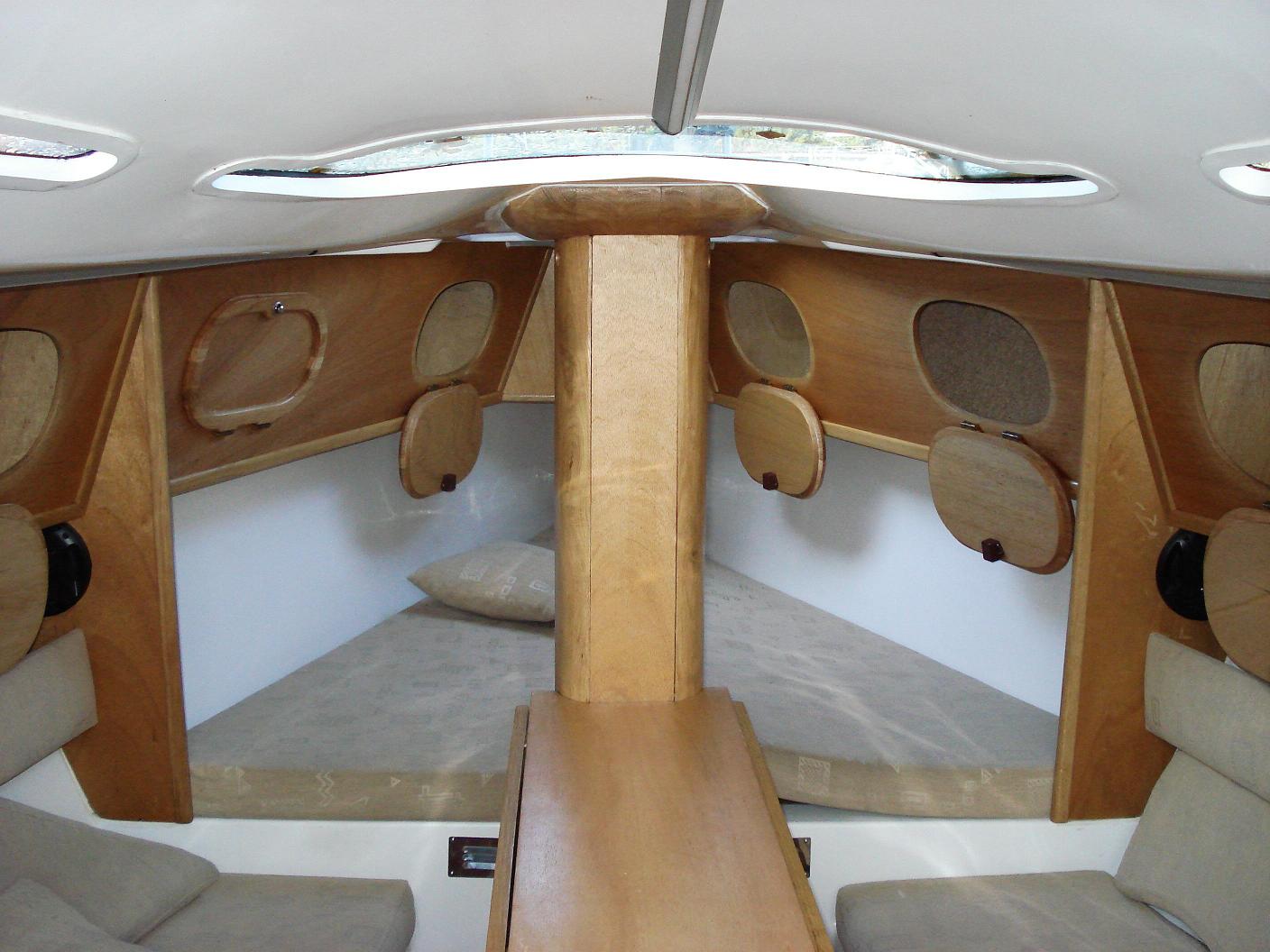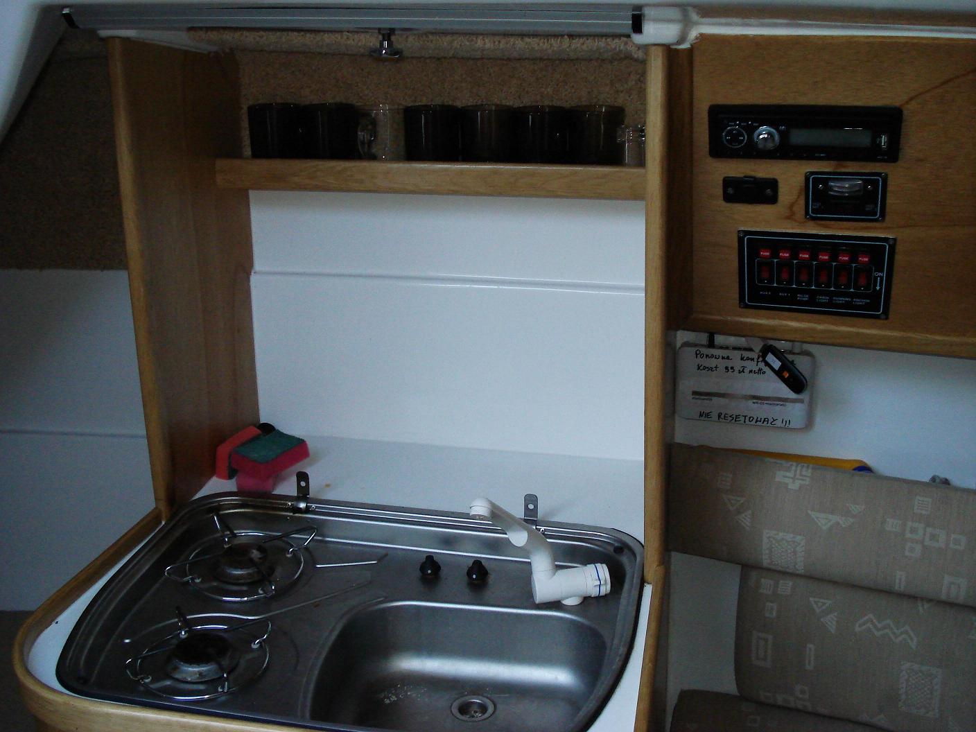 Wyposażenie dodatkowe: bramka do kladzenia masztu, sztywny sztag, roll fok, lazzy jack, instalacja wody - zbiornik, radio, mp3, TV, DVD, lodówka, instalacja 230 V